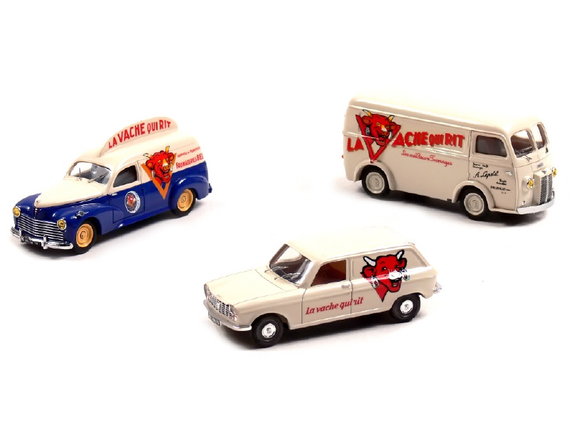 AQUAVIT (FRANCE) Ensemble de 3 véhicules PEUGEOT 'LA VACHE QUI RIT'