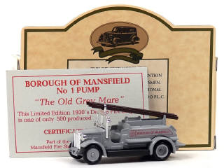 PASTURE PROMOTIONS (GB) DENNIS Camion-échelle de pompiers 'BOROUGH OF MANSFIELD' gris clair & noir