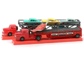 NOREV (FRANCE) 525 UNIC ZU 120 avec semi-remorque Porte-voitures rouge & gris