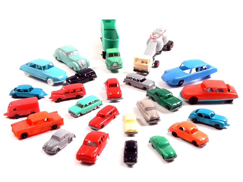 états de 'A' à 'D' - miniatures reproduisant notamment les modèles : PEUGEOT, RENAULT, CITROËN, UNIC, PEGASO, SIMCA, OPEL, SEAT, VOLKSWAGEN & AUTO-UNION - on y retrouve notamment les marques : WIKING, CLE, PP, CADUM PAX, EKO & NOREV (une carrosserie déformée) - quelques petits manques
