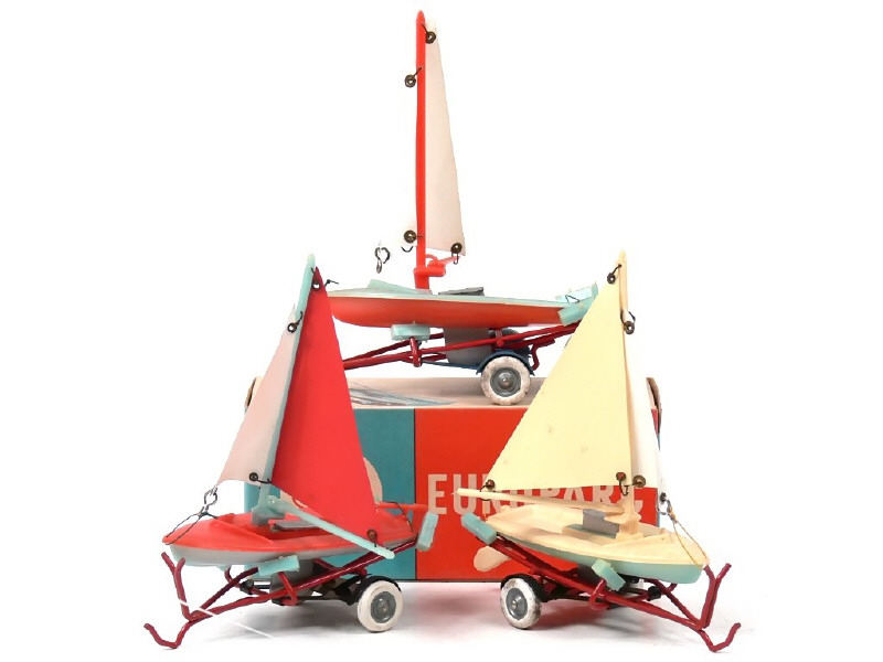 C.I.J. (FRANCE) 3/76A Voilier sur sa remorque bleu ciel, rouge & bleu