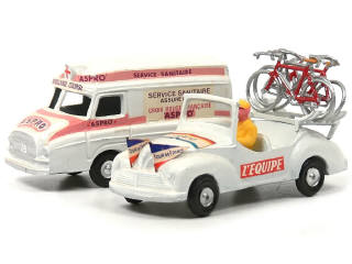 publicités 'L'EQUIPE GITANE' - avec conducteur, 2 fanions, 3 vélos & volant en plastique