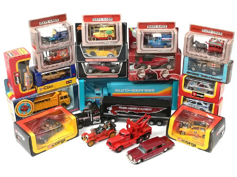 états de 'A' à 'C' - miniatures reproduisant notamment les modèles : FERRARI, FIAT, RENAULT, AUDI, MERCEDES, BUGATTI, ALFA ROMEO, DIAMOND, DAIMLER, CROSSLEY, ROLLS ROYCE, CITROEN, IVECO & PETERBILT - on y retrouve les marques : MATCHBOX, CORGI TOYS, GUISVAL, POLISTIL, BBURAGO, MATCHBOX MODELS OF YESTERYEAR, DINKY TOYS & LLEDO - 3 modèles sans boîte - possibilité de petits manques