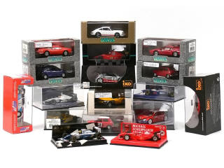 miniatures reproduisant les modèles : CITROEN, RENAULT, AUSTIN, FERRARI, WILLIAMS RENAULT, WILLIAMS BMW, PORSCHE, PEUGEOT & LANCIA - on y retrouve les marques : VITESSE, ONYX, QUARTZO, MINICHAMPS & IXO - possibilité de petits manques