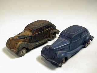 fabrication française des années 30 - la coque est en matière synthétique & les pneus en caoutchouc blanc - Peut-être cadeau publicitaire ?