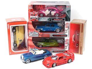 grandes échelles - miniatures reproduisant les modèles : PEUGEOT, ROLLS ROYCE, DONG FENG, MERCEDES, RANGE ROVER, CITROEN, FERRARI & VOLKSWAGEN - 2 véhicules sans boîte - on y retrouve les marques : NOREV, BBURAGO, SOLIDO, MAISTO & SIGNATURE MODELS