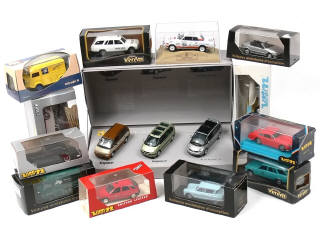 miniatures reproduisant les modèles : CITROEN, FORD, PEUGEOT, ROLLS ROYCE, BENTLEY, RENAULT, FERRARI, PANHARD & RANGE ROVER - on y retrouve les marques : VEREM, ELIGOR, NOREV & UNIVERSAL HOBBIES - 3 modèles regroupés dans un coffret & plusieurs autres avec figurines de la COMPAGNIE EUROPEENNE DES COLLECTIONNEURS