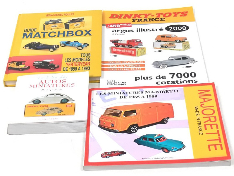 comprend : 'LES MINIATURES MAJORETTE DE 1965 A 1980', 'GUIDE MATCHBOX - TOUS LES MODELES YESTERYEAR DE 1956 A 1993', 'LA FOLIE DES AUTO MINIATURES' & 'ARGUS ILLUSTRE DINKY TOYS FRANCE 2008'