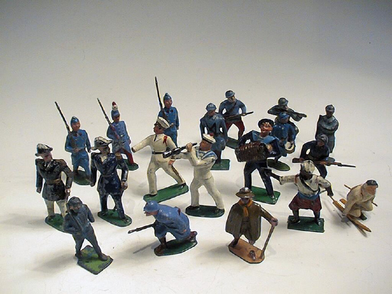 ensembles de personnages en étain soufflé dont 15 soldats - états divers