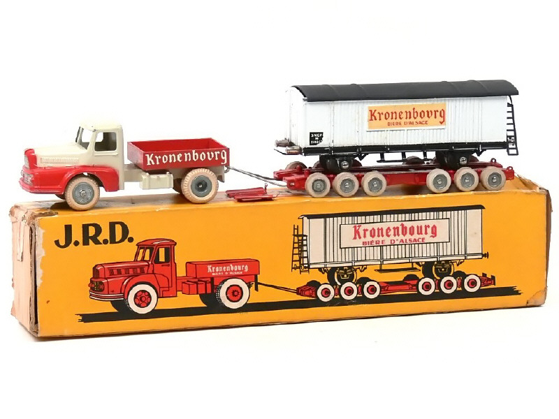 JRD (FRANCE) 123 UNIC avec remorque rail-route 'KRONENBOURG' blanc cassé & rouge
