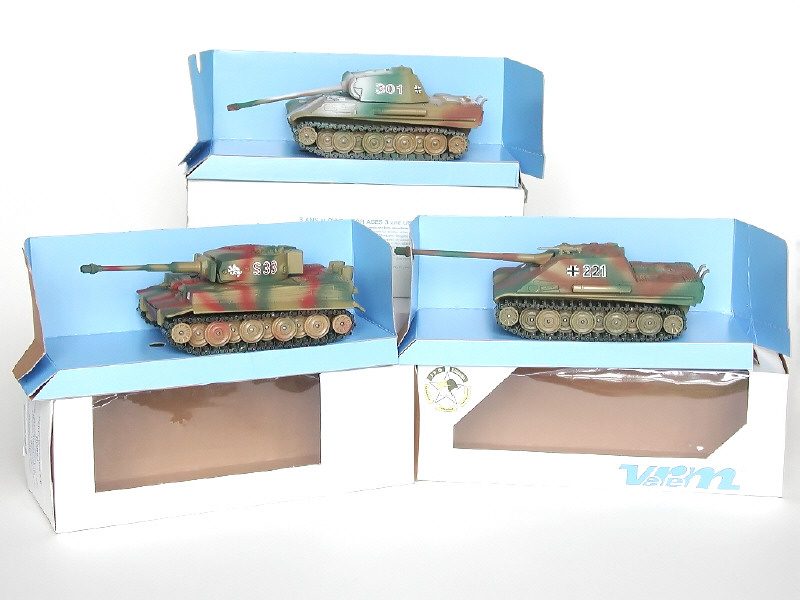 séries limitées VEREM en exclusivité pour JFD - miniatures reproduisant les modèles : PANTHER 1942, JAGD PANTHER 1944 & TIGRE - avec sachets d'accessoires