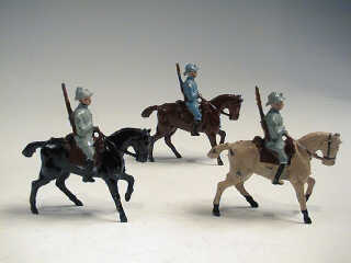 FIGURINES en étain soufflé Poilu sur cheval crême polychrome
