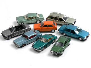 miniatures reproduisant les modèles : VOLKSWAGEN, PORSCHE, BMW, FORD (suspension avant affaissée sur une voiture), OPEL & AUDI - on y retrouve les marques : GAMA, MÄRKLIN, CONRAD & SCHUCO