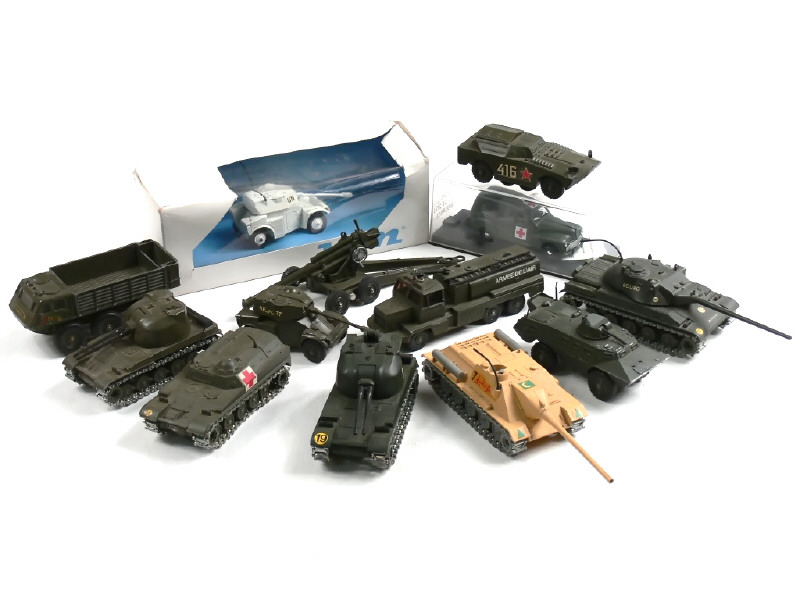SOLIDO (FRANCE) Ensemble de 10 véhicules blindés, une voiture, un canon & un camions militaires