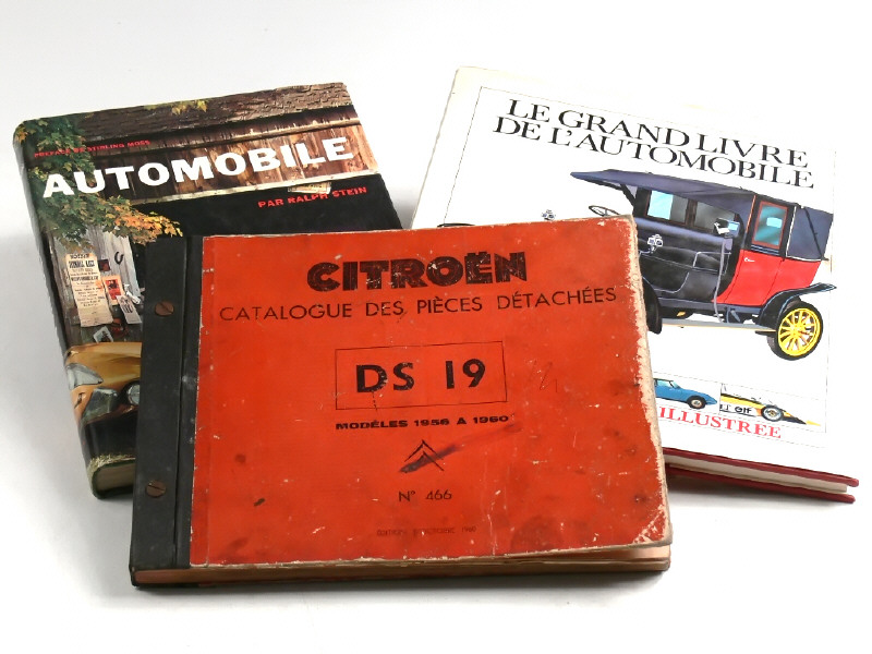 comprend : 'LE GRAND LIVRE DE L'AUTOMOBILE', 'AUTOMOBILE' & catalogue de pièces détachées pour la CITROEN DS19