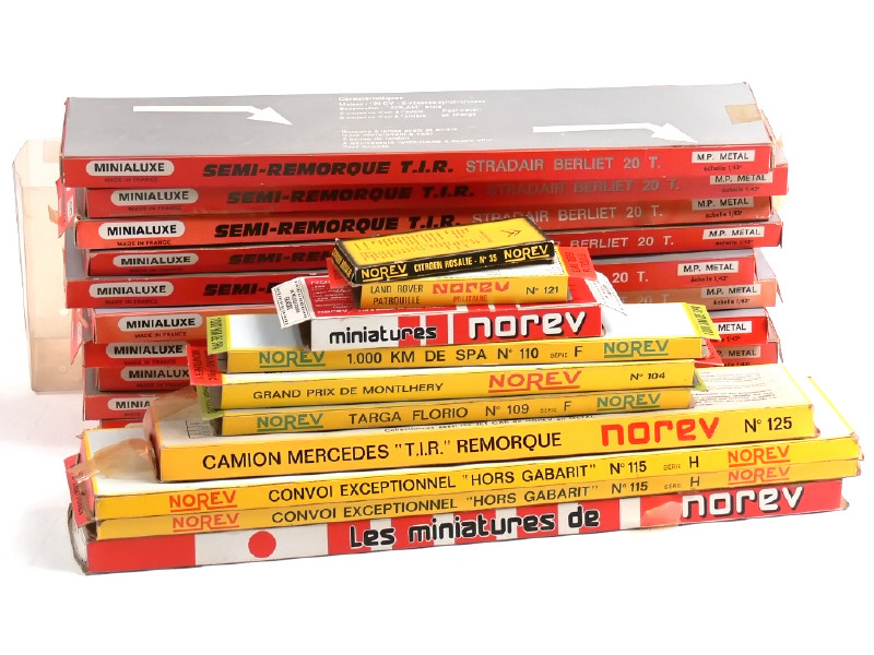états de 'b' à 'c' - on y retrouve les marques NOREV (références : 35, 104, 109, 110, 115, 121 & 125) & MINIALUXE (BERLIET STRADAIR semi-remorque TIR)