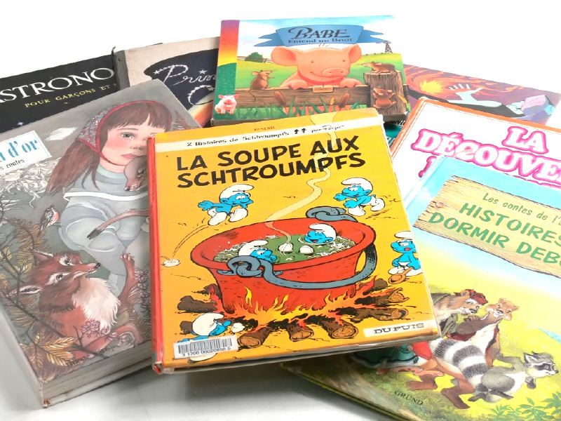 états de 'b' à 'c' - comprend notamment les titres : ASTRONOMIE, LE MONDE ENCHANTE DE WALT DISNEY, LA DECOUVERTE DU MONDE, L'OISEAU D'OR, LA SOUPE AUX SCHTROUMPFS, HEIDI, LES MEMOIRES D'UN ANE, LE LIVRE DE LA JUNGLE, LES PLUS JOLIES HISTOIRES DES ANIMAUX... - quelques restaurations