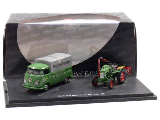 SCHUCO (ALLEMAGNE) 02594 VOLKSWAGEN T1 Bâché 'FENDT' avec tracteur agricole vert, rouge & gris