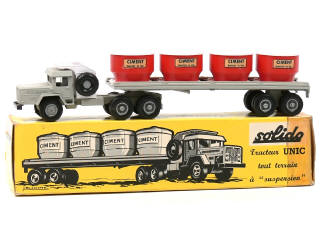 SOLIDO (FRANCE) 301 UNIC Semi-remorque plateau transport de ciment gris, blanc & rouge