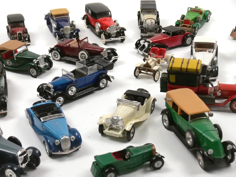 états de 'B' à 'F' - miniatures reproduisant notamment les modèles : HISPANO SUIZA, FIAT, CHALMERS, MG, ITALA, VOISIN, CORD, MERCEDES, DUISENBERG, SIZAIRE & NAUDIN, STUTZ & PORSCHE - on y retrouve les marques : JMK, RIO, MATCHBOX, SAFIR & SOLIDO - quelques parties repeintes - avec manques