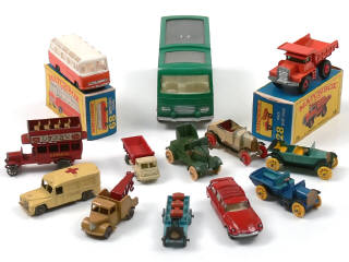 états de 'B' à 'E' - miniatures reproduisant notamment les modèles : MERCEDES (avec boîte en état 'd'), MACK (avec boîte en état 'c'), DAIMLER, RENAULT & CITROEN - on y retrouve les marques : MATCHBOX (un modèle incomplet), CHARBENS, C.I.J. & EFSI (avec manques)