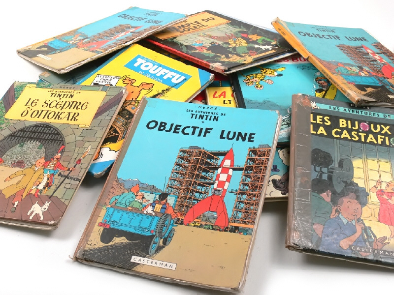 états de 'B' à 'F' - on y retrouve notamment les titres suivants : OBJECTIF LUNE, LES CIGARES DU PHARAON, COKE EN STOCK, LES BIJOUX DE LA CASTAFIORE, TINTIN AU TIBET, TOUFFU, LUCKY LUKE, ACHILLE TALON, MARSUPILAMI, GASTON LAGAFFE, ALIX, LES SCHROUMPFS, ASTERIX......