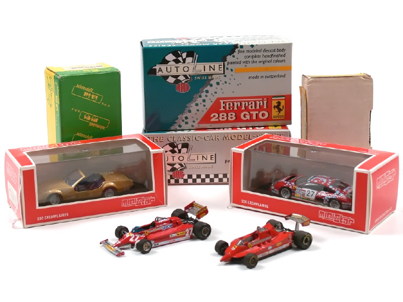 comprend : 288 GTO (2 exemplaires), 512 BB, 512 S, 365 BEACH, 158 F1, 126 C F1 & 126 F1 - on y retrouve les marques : HIFI, AUTOLINE & MINISTAR - quelques petites pièces à recoller