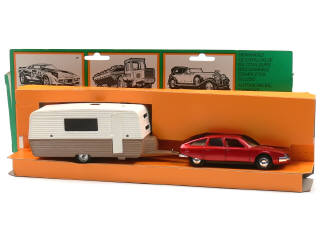 SOLIDO (FRANCE) 614 Coffret-caravane rouge métal, blanc & marron clair