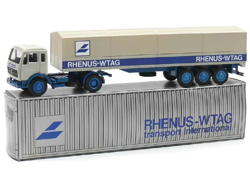 NZG (ALLEMAGNE) 186 MERCEDES Semi-remorque bâchée 'RHENUS-WTAG' gris clair & bleu