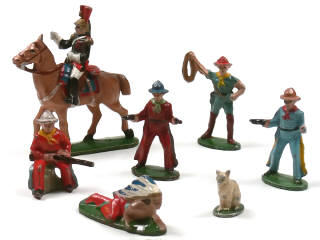 comprend : 4 cow-boys, un indien & un garde républicain sur sa monture (manque étendard) - le chat est en état 'D'