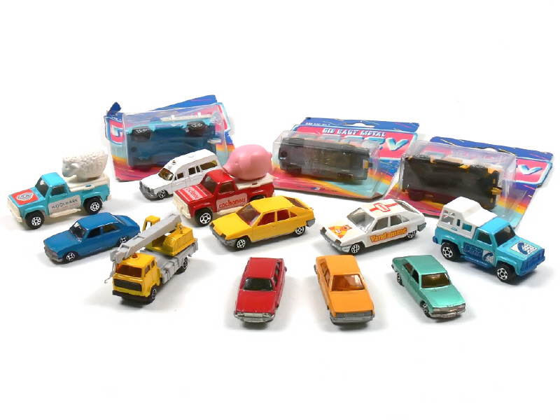 états de 'A' à 'C' - miniatures reproduisant notamment les modèles : RENAULT, PEUGEOT, CITROEN, MERCEDES (avec retouches) & VOLVO - 3 véhicules sous blister - 2 véhicules avec axes de roues déformés