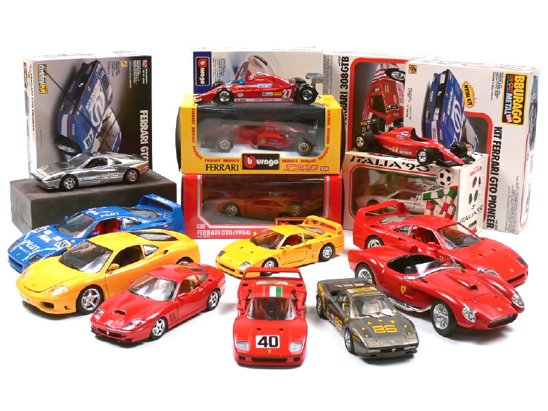 grandes échelles - miniatures reproduisant notamment les modèles : 250 TESTAROSSA, F40, 550 MARANELLO, 360 MODENA, GTO & F310 - 4 voitures avec boîte
