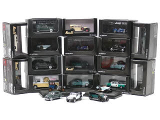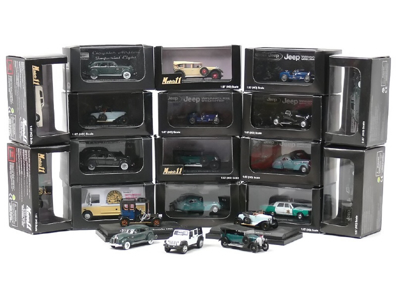 petites échelles - miniatures reproduisant notamment les modèles : CHRYSLER, AUSTRO DAIMLER, PLYMOUTH, JEEP & BUGATTI - 2 modèles de la marque MODELS 11 & 4 autres sans boîte