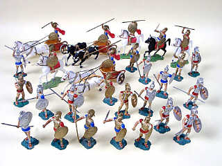 comprend : 20 fantassins, 4 cavaliers & 3 chars - manque 2 petits accessoires