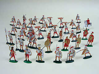 C.B.G. (FRANCE) Ensemble de 37 soldats romains rouge & gris métal