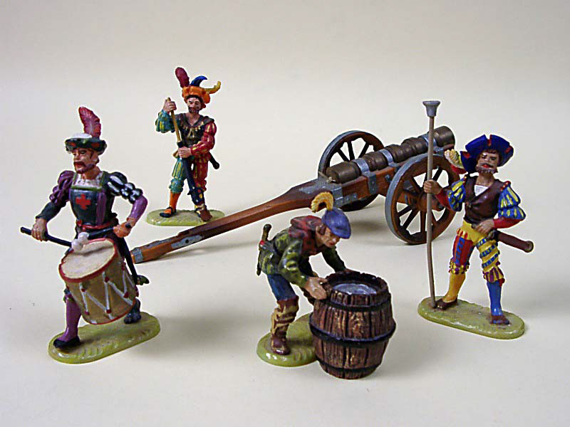 ELASTOLIN (ALLEMAGNE) Ensemble de 4 lansquenets & d'un canon