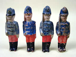 BON-DUFOUR (FRANCE) Ensemble de 4 hussards en composition bleu & rouge