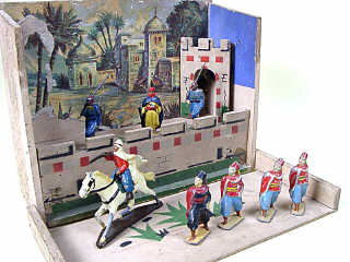 avec illustration collée sur le fond - vendu lors de l'exposition coloniale de 1937 - on y joint un ensemble de 7 fantassins (dont 4 spahis) & 1 cavalier