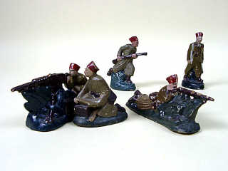 DIVERS (FRANCE) Ensemble de 5 tirailleurs en composition creuse kaki & rouge