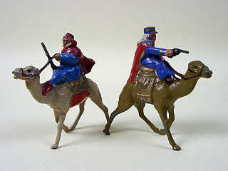 DIVERS (FRANCE) Ensemble de 2 méharistes en plomb creux bleu, rouge & marron