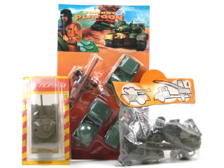 contient : MERCEDES dépanneuse, MERCEDES canon antiaérien & un EBR - réalisation en plastique à monter sous sachet jamais ouvert - on y joint un blister 'COMBAT PLATOON' (jamais ouvert & de marque indéterminée) contenant 2 JEEP, une ambulance & un canon & un char CENTURION de la marque NOREDA (sous blister jamais ouvert)