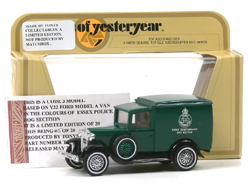 TONYS COLLECTABLES (GB) TCY09 FORD A Van 'ESSEX CONSTABULARY DOG SECTION' vert & noir