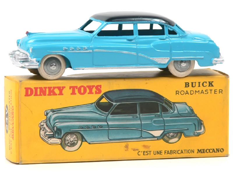 DINKY TOYS (FRANCE) 24V BUICK ROADMASTER (version avec intérieur de toit lisse & jantes zamac brut) 2 tons de bleu