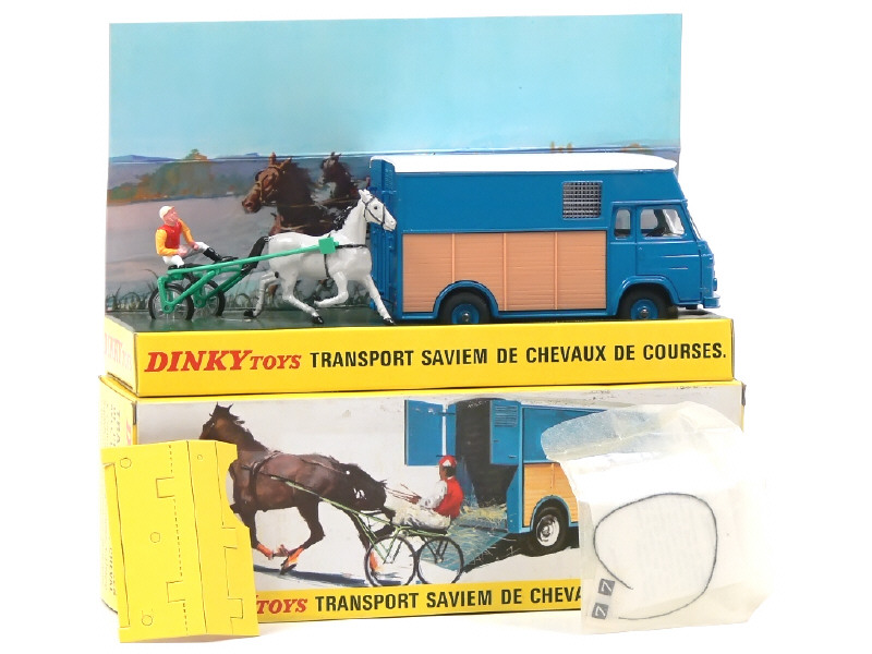 DINKY TOYS (FRANCE) 571 SAVIEM Goélette transport de chevaux bleu, bois, toit blanc