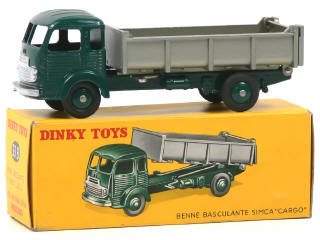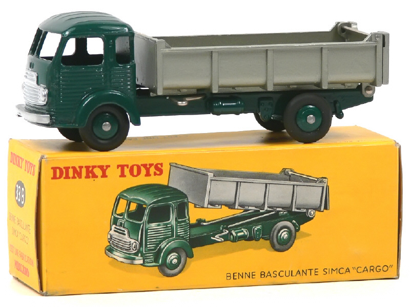 DINKY TOYS (FRANCE) 33B SIMCA CARGO Benne basculante vert foncé, benne gris métal doré (intérieur lisse)