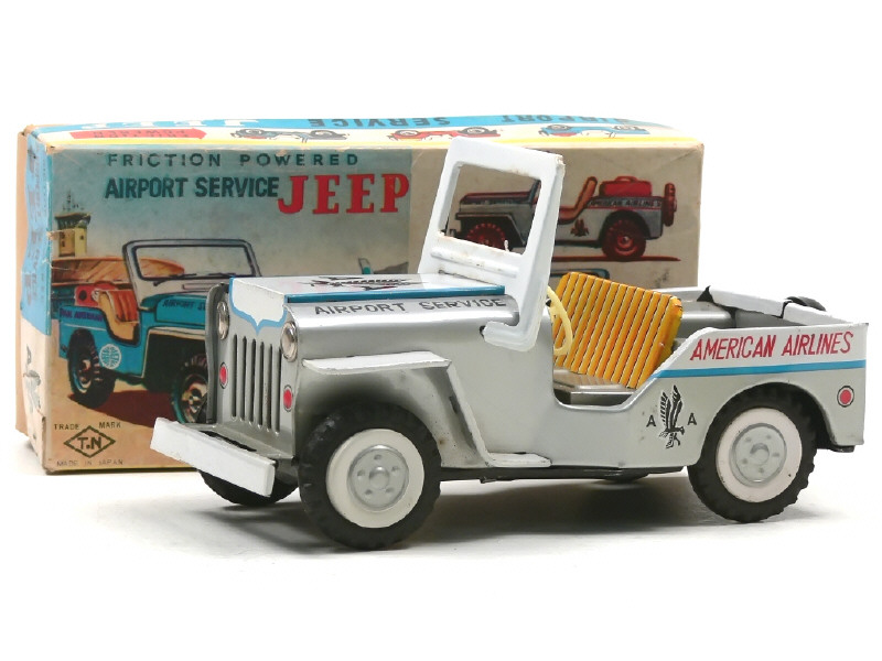 T.N. (JAPON) AIRPORT SERVICE JEEP 'AMERICAN AIRLINES' en tôle lithographiée gris métal & blanc