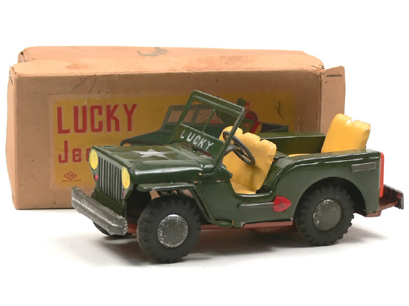 T.N. (JAPON) JEEP de l'armée américaine 'LUCKY' en tôle peinte kaki & beige