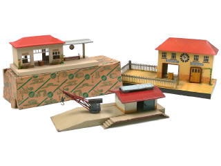 KIBRI 'HO' (ALLEMAGNE) Petite gare en tôle peinte beige, rouge & gris clair