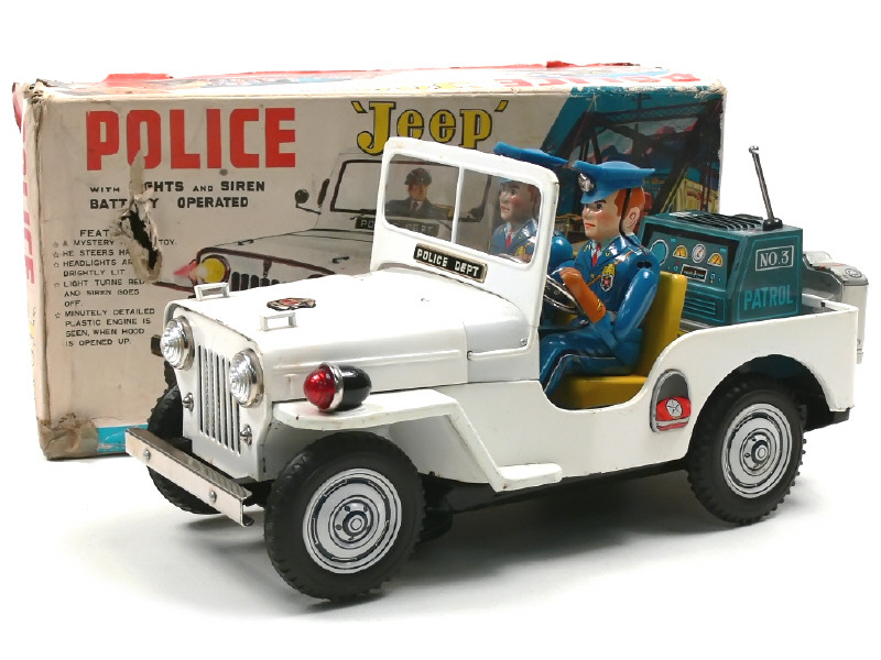 T.N. (JAPON) POLICE PATROL JEEP en tôle lithographiée blanc