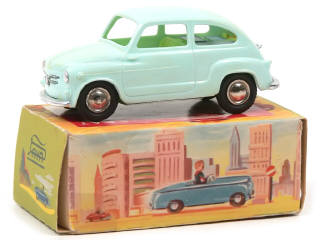 échelle 1/32ème - moteur à friction (fonctionne) - traces de verni d'origine sur la carrosserie - manque vitrage & volant - boîte avec étiquettes autocollantes présentant le modèle sur 2 faces